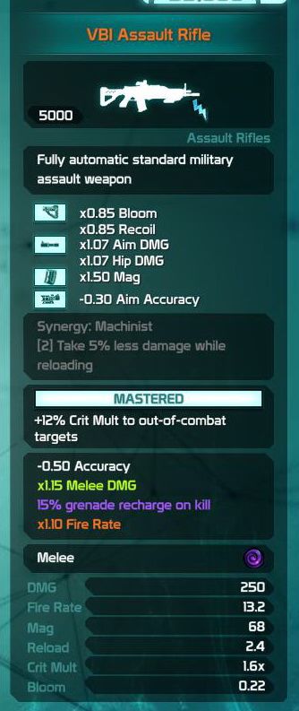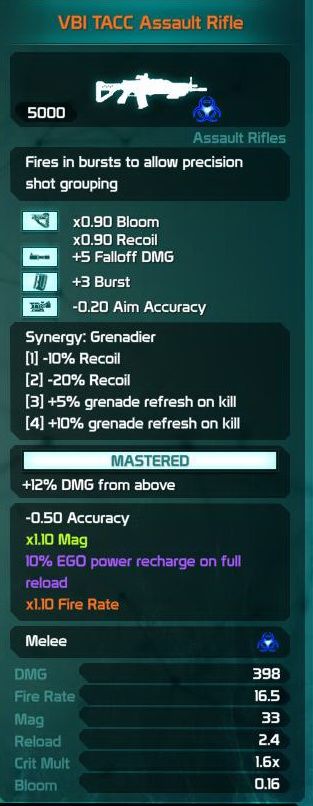 VBI TACC Assault Rifle all "Grenadier" mods equipped