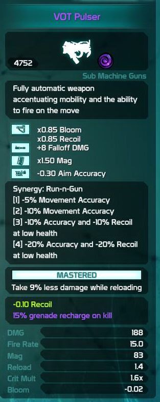 VOT Grind Fragger Attachment 4757 two "Quartermaster" mods equipped