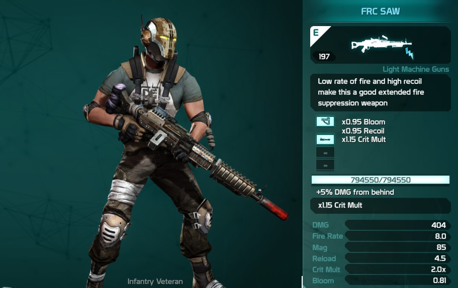 i have a green 50 ego LMG that i would love to swap for something better but since the game has a color coding system and ego rating system on weapons that doesnt make sense being there, even a orange and multiple purple 400+ ego LMG's have not even been close to better.